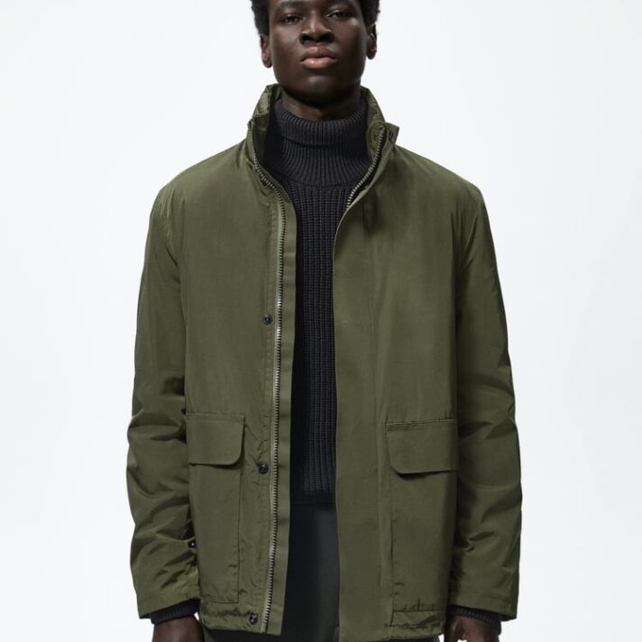 TECHNICAL QUILTED JACKET Jacket with lightly padded interior. High collar with stow-away hood detail. Long sleeves with elastic inner cuffs. Patch pockets with flaps at the hip. Inside pocket. Zip-up front hidden by a snap-button placket. KHAKI 9621 403₹8,990.00Original price was: ₹8,990.00.₹3,990.00Current price is: ₹3,990.00. Add to cart -