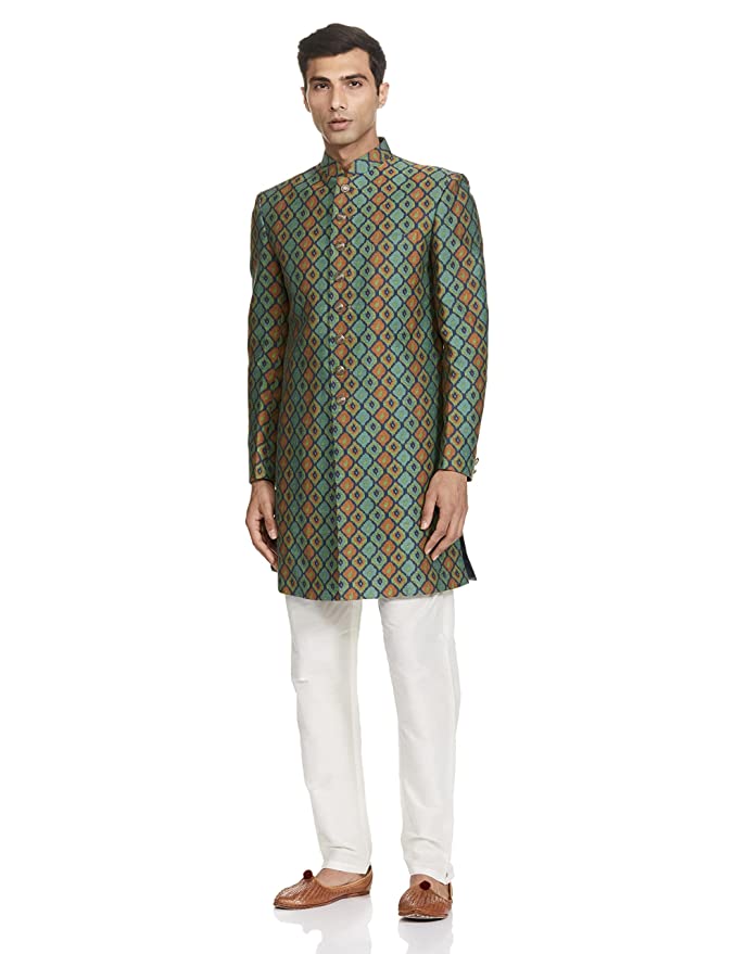 Ethnix Men’s Jaquard Indowestern Jacket (RTIB00133-N5_Medium Green_100