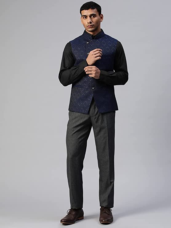 Description Product Type: Men’s Waistcoat Brand: MANQ Material: Jacquard Silk Tailored to perfection for the fashion-elite, this waistcoat from MANQ is crafted with Jacquard Silk which makes it a perfect party festive wear. Featuring a round neck and a buttoned front, it displays 2 functional pockets on the exterior for utility. Fashioned in a slim fit for a comfortable and fitted feeling, this waistcoat can be paired with a shirt and trousers denim. Designed to suit your body, the product has been fabricated to provide you comfort and ease all day long. The product has migrated from its usual tag of Winter Attire to Regular wear even during Summer. This MANQ waistcoat has a fully buttoned placket that is lined with shiny round buttons. The buttons are not only stylish but give a structured shape to the waistcoat when fully fastened. Additional Information ManufacturerA.R.ENTERPRISES, C-45 Lakhi Ram Park,New Delhi-110086 Item Weight250 g Item Dimensions LxWxH28 x 28 x 2 Centimeters