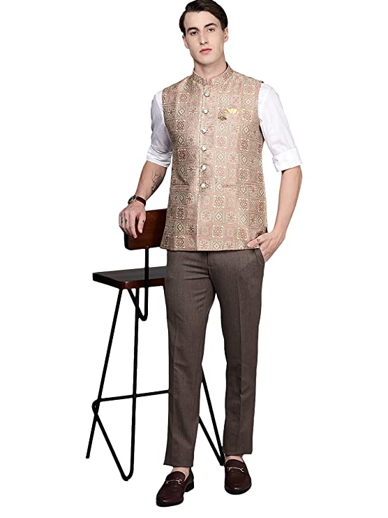 Description Manyavar PISTA Sleeveless Mandarin Collar Jacket Additional Information ManufacturerManyavar, Vedant Fashions Limited. Paridhan Garment Park, SDF Building, Block A, Kolkata 700015. PackerManyavar Creations Pvt Ltd, Srijan Industrial Logistic Park, Part-C, Block-A, 1st Floor, NH-6, Howrah-711302 Item Weight450 g Item Dimensions LxWxH33 x 23 x 4 Centimeters Net Quantity1.00 count Generic NameMen s Nehru Jacket