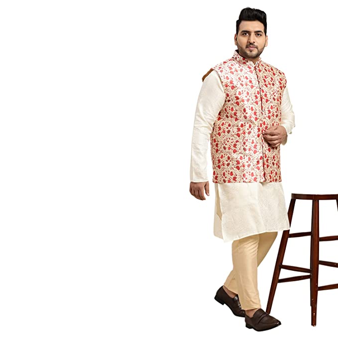 Description Sojanya PLUS as a brand brings you quality and affordability. In market since 1958, we take pride in our commitment to maintain quality standards in each piece manufactured by us. Look your ethnic best wearing this designer Blue & Steel color printed nehru jacket from the house of Sojanya PLUS. It is made up of premium silk blend fabric. Team this with kurta pyjama (preferably in contrast color) and look apart on special occasions. Additional Information ManufacturerName: Daulat Ram Om Prakash. Address: 1127, Kucha Natwa, Chandni Chowk, Delhi: 110006, India, Name: Daulat Ram Om Prakash. Address: 1127, Kucha Natwa, Chandni Chowk: 110006 Item Weight200 g Item Dimensions LxWxH33 x 25 x 4 Centimeters