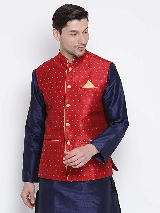Description Vastramay brings to you these jacket for mens stylish stitched meticulously to fit all body type. This fabric has been designed keeping in mind the latest trends in a casual fashion or occassional fashion. Engineering garments which fit all body types and style is our aim. These nehru jacket for mens latest designs like modi jackets for men are of multi utility, it can be used as a bandi or for a formal event, or a business meeting as a waist coat for men. If paired with a Kurta Pajama For Men then these are perfect light weight easy to wear alternative to a servani or indo western for men. Our recommendation next time don t go for a sherwani for men stylish latest design, try these! To complete the look adorn a mojari or jutti slippers for men stylish, you may also try an authentic Kohlapuri chappal for men, the fashionistas and millennial folks may experiment with a brogues or oxfords juta for men stylish. Suitable for: Party, Weddings, Regular Wear, Celebrations, Occasions, Festivals, Lohri, Pongal, Makar Sakranti, Baisakhi, Holi, Eid, Raksha Bandhan, Dussehra, Diwali, Navratri, Pooja, Christmas, Onam, Ganesh Chaturthi, Janmasthmi and Gifts for Mens. Additional Information ManufacturerVASTRAMAY Item Weight322 g