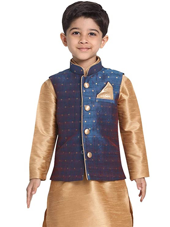Product Details Care InstructionsDry Clean Only Country of OriginIndia About this Item Fabric: Cotton Silk Blend Contents: a Boys Nehru Modi Jacket Suitable for: Party, Weddings, Regular Wear, Celebrations, Occasions, Festivals, Lohri, Makar Sakranti, Baisakhi, Holi, Raksha Bandhan, Dussehra, Diwali, Navratri, Pooja, Christmas, Onam, Ganesha and Gifting. All our kurtas, Sherwani, Indowestern and Nehru Jackets have loosening over the body measurement. Measurements shown in images or the size chart section are garment measurements, so take adequate 5-6 inches loosening over the little champion s body measurement to get the right fit. Our kurtas are Medium length and Regular Fit. Our Kurta fitting is usually slightly relaxed compared to a Regular Shirt s fitting. Select your Kurta size based on your chest dimension. Wash Care Instructions: Dry Clean preferably or cold light wash